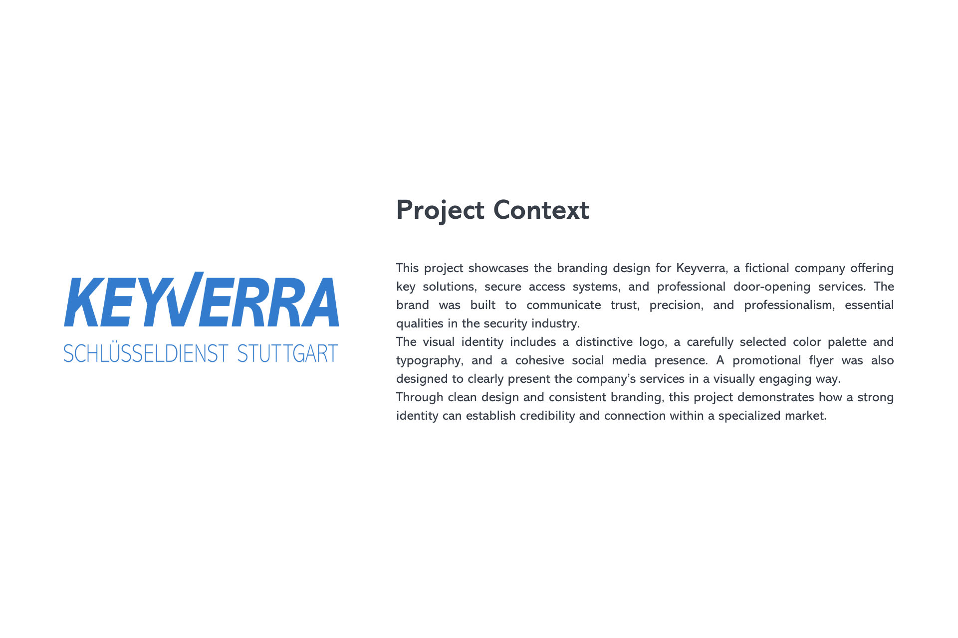 Keyverrra is a branding project focusing on logo design, visual identity, and flyer design. The goal was to create a clean, consistent, and modern brand presence across both digital and print applications.