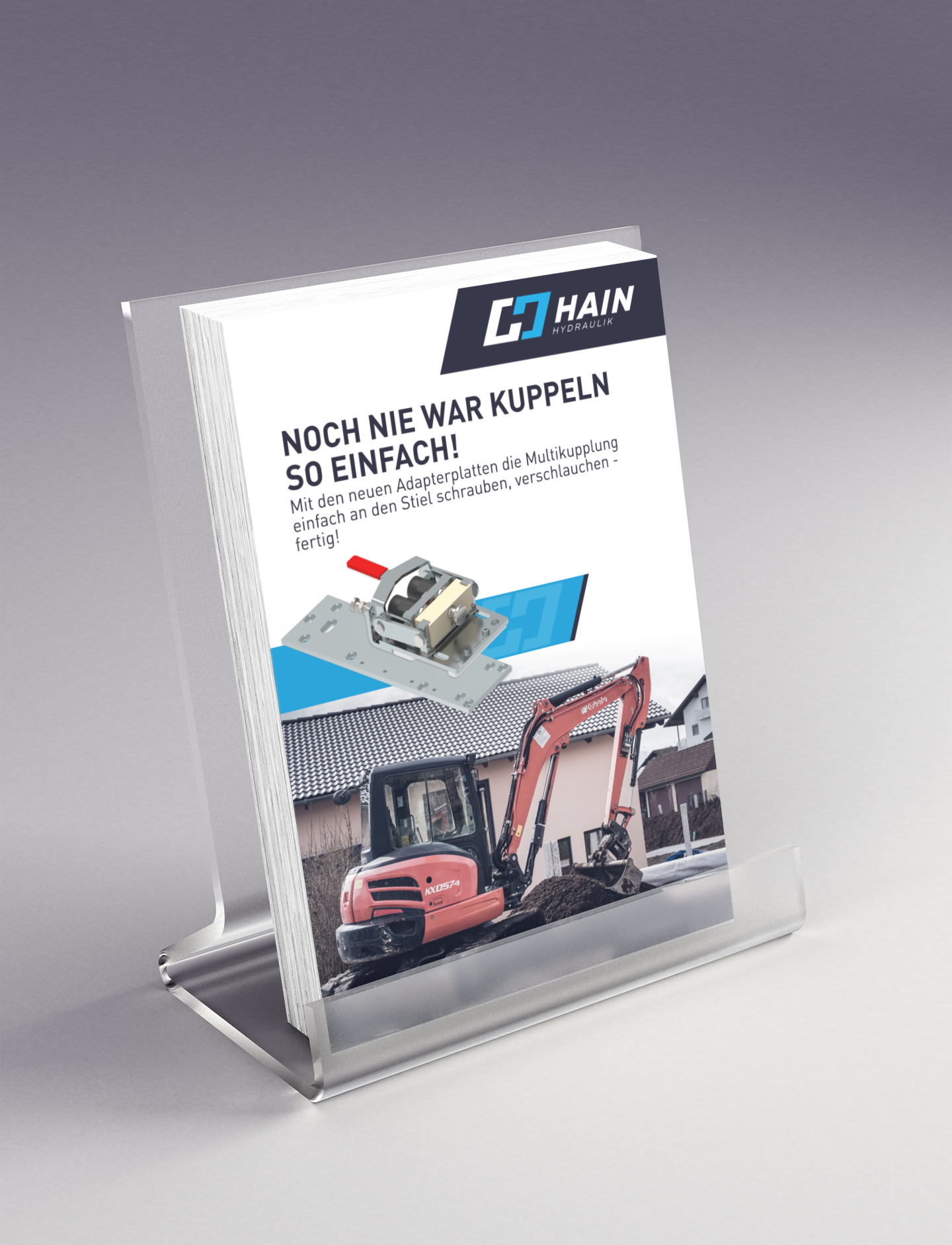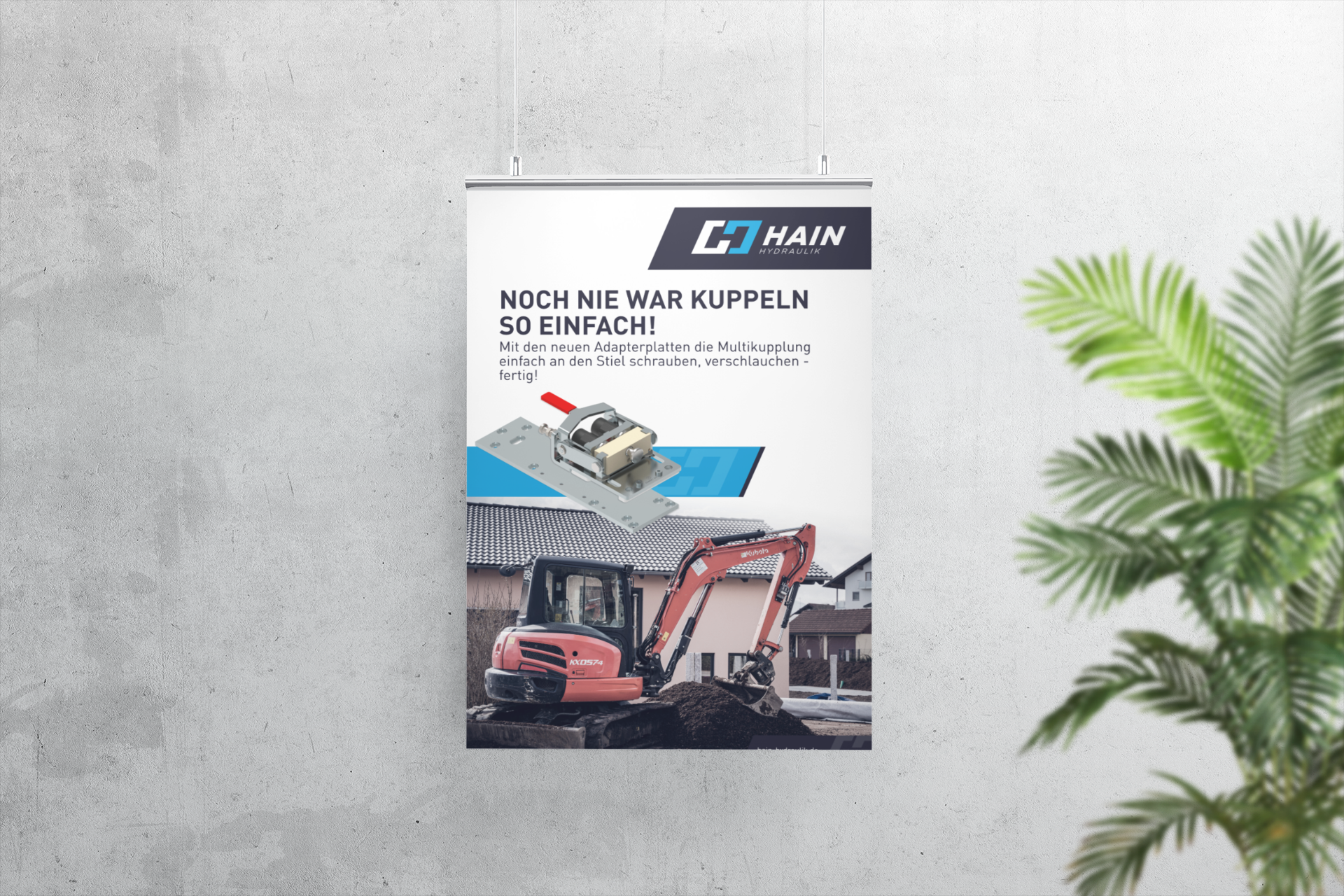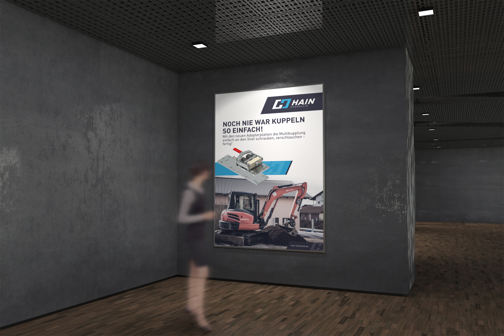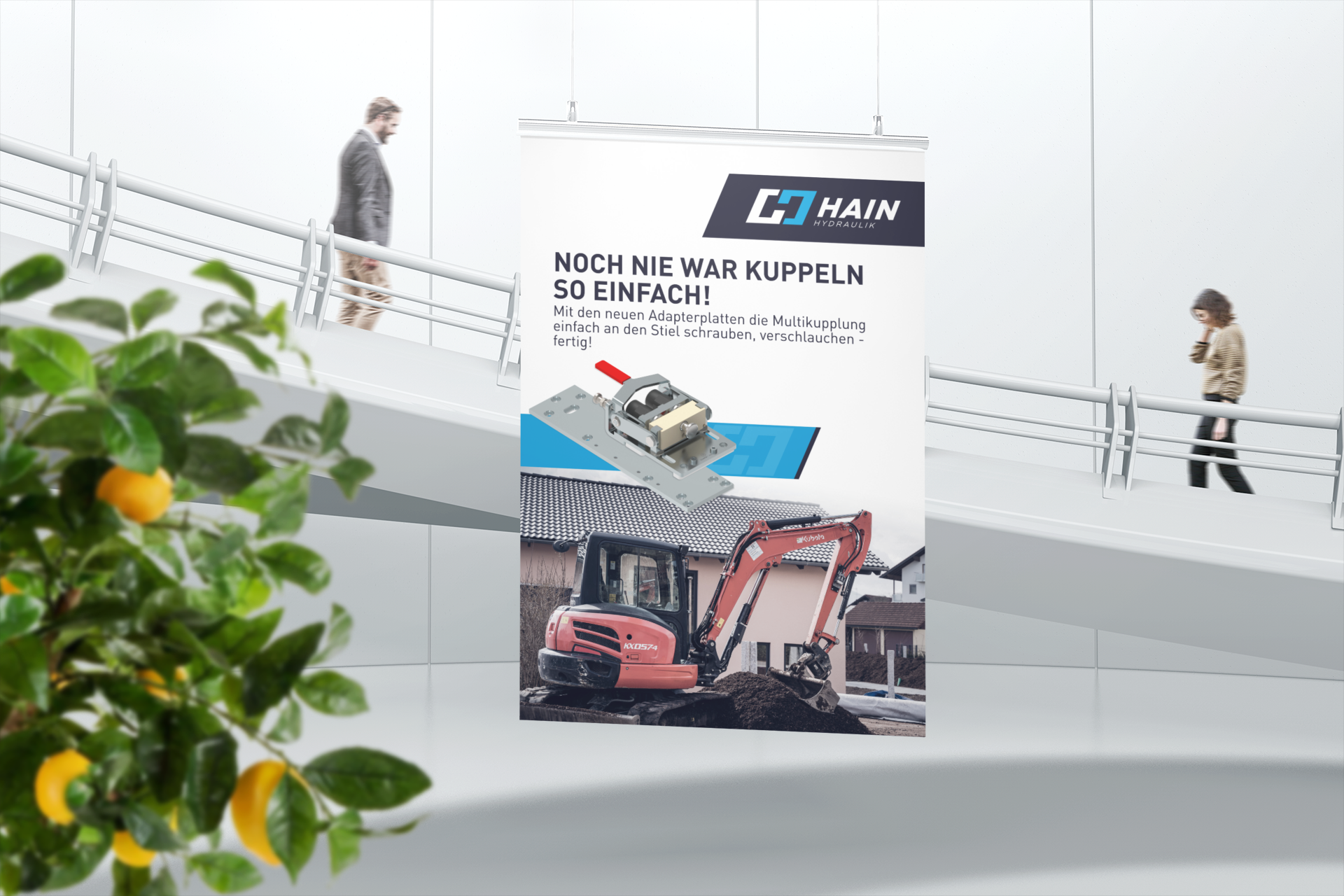 A modern marketing poster was designed for HAIN Hydraulik to highlight the company’s technical expertise. Striking images of hydraulic components are combined with clean typography and a blue-grey color scheme that conveys trust and precision. The clear layout ensures good readability, while keywords like “Efficiency” and “Reliability” deliver the message concisely. The poster is versatile for use at trade fairs, in print, or digital media, effectively strengthening HAIN Hydraulik’s professional brand image.
