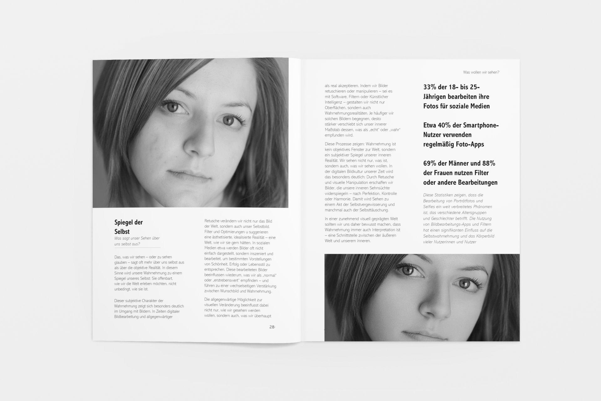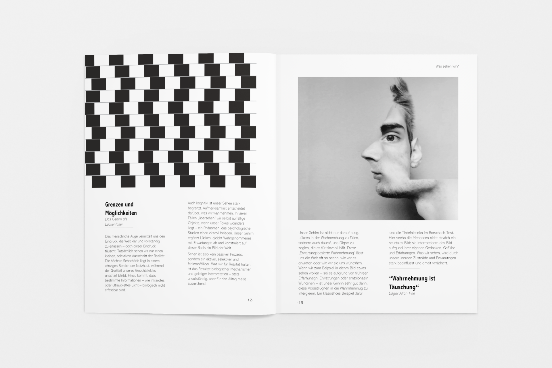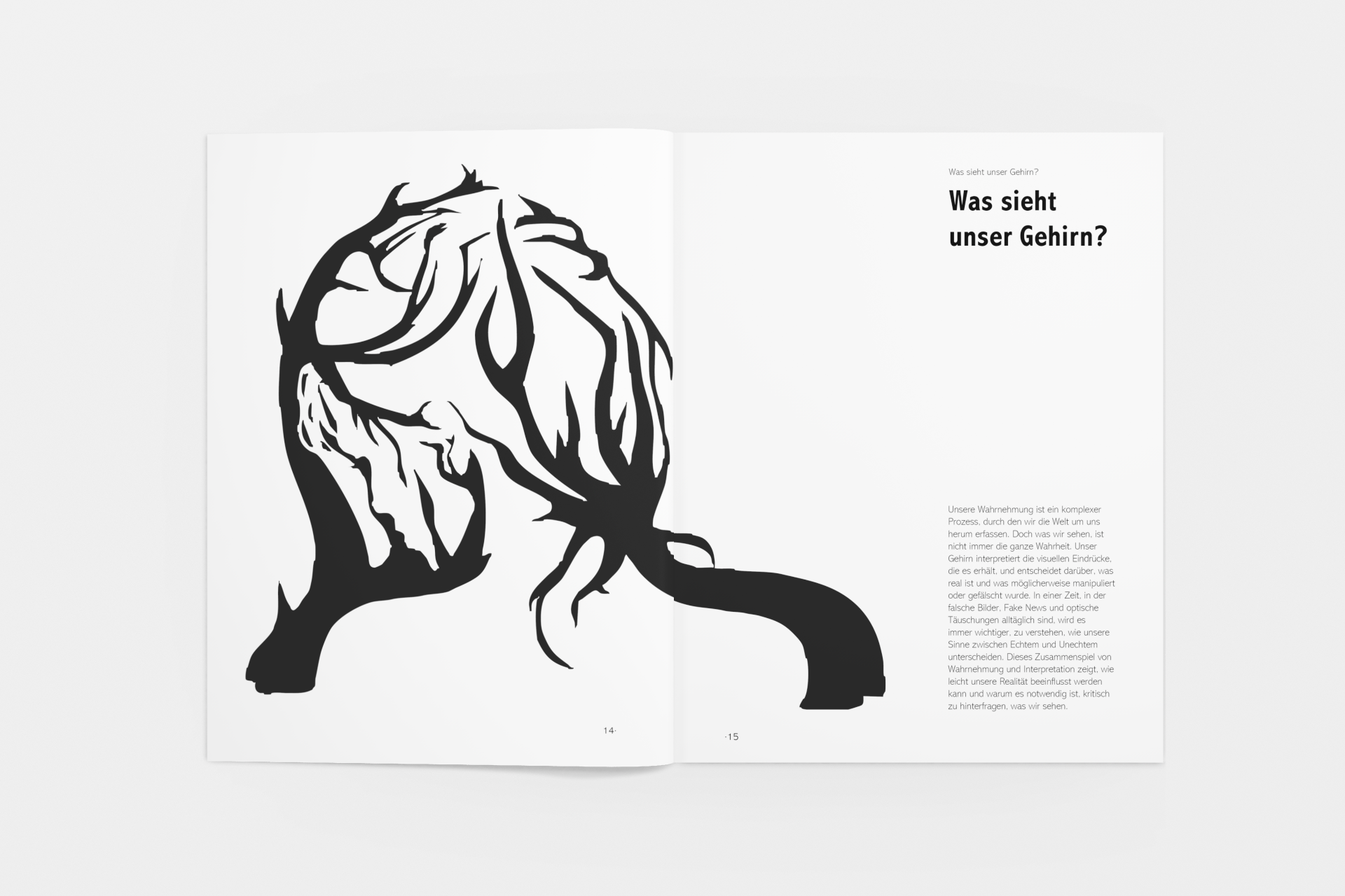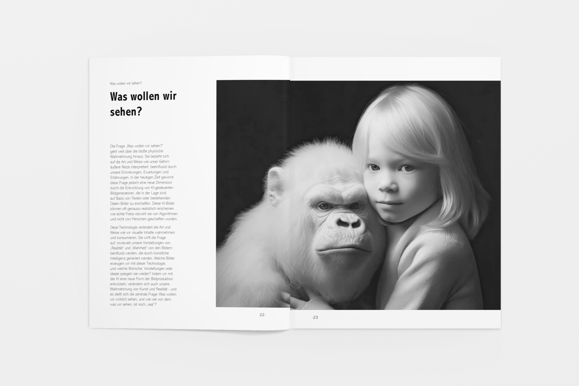 This project involved designing a minimalist black-and-white booklet that explores the theme of “real vs. fake.” Through clear typography and a clean layout, the booklet addresses topics such as perception, illusions, and artificial intelligence. The goal was to create a visually engaging and thought-provoking piece that encourages readers to question their understanding of reality.